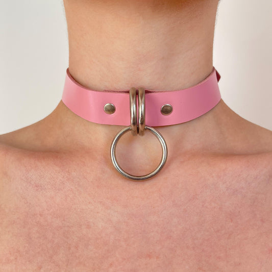 Twin Leather Collar with Bondage Ring - Pink