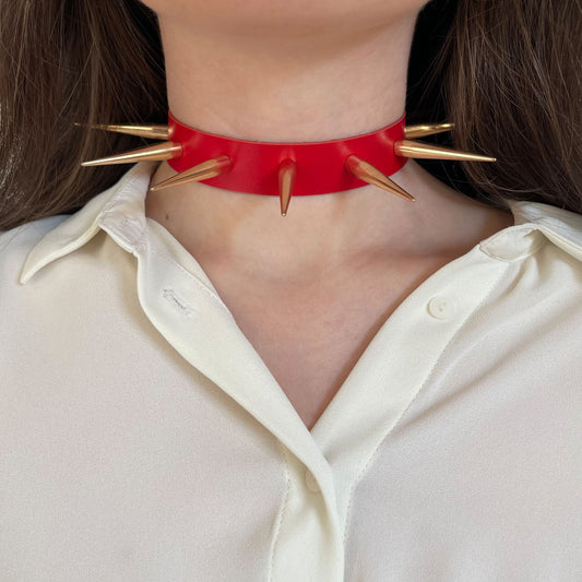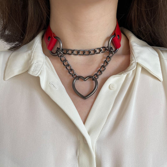 Minimalist Twin Choker with Front Ring and Buckle – Red