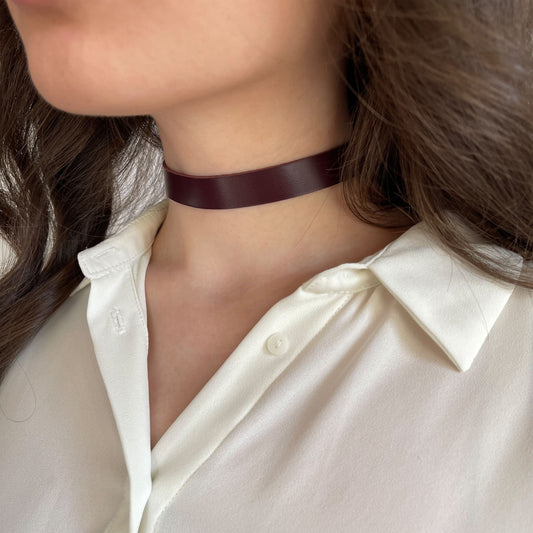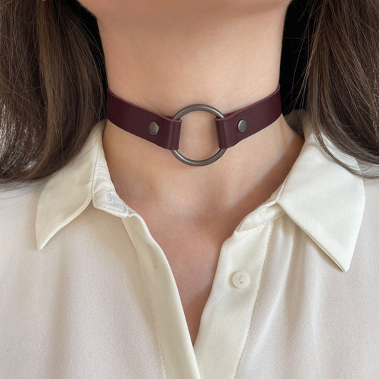 Minimalist Twin Choker with Front Ring and Buckle – Marsala