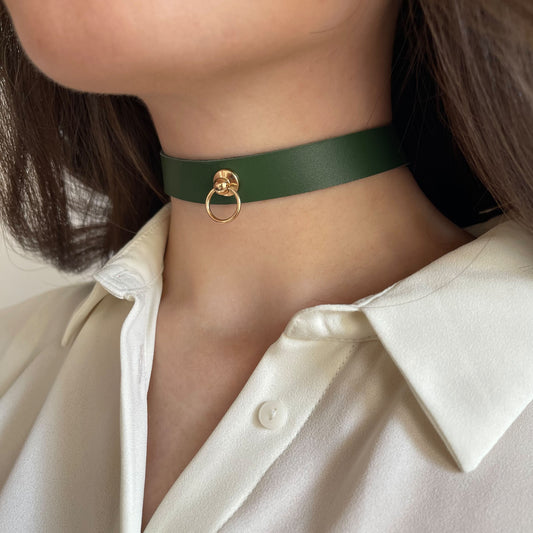 Minimalist Twin Choker with Front Ring and Buckle – Green