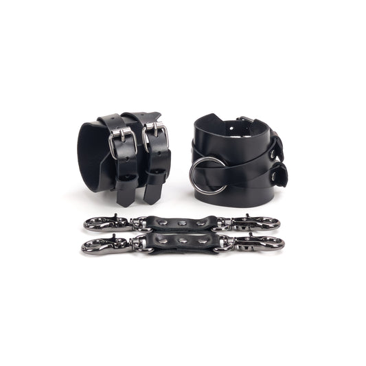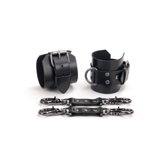 Leather Wrist and Ankle Cuffs BDSM Set with Two Leather Connectors