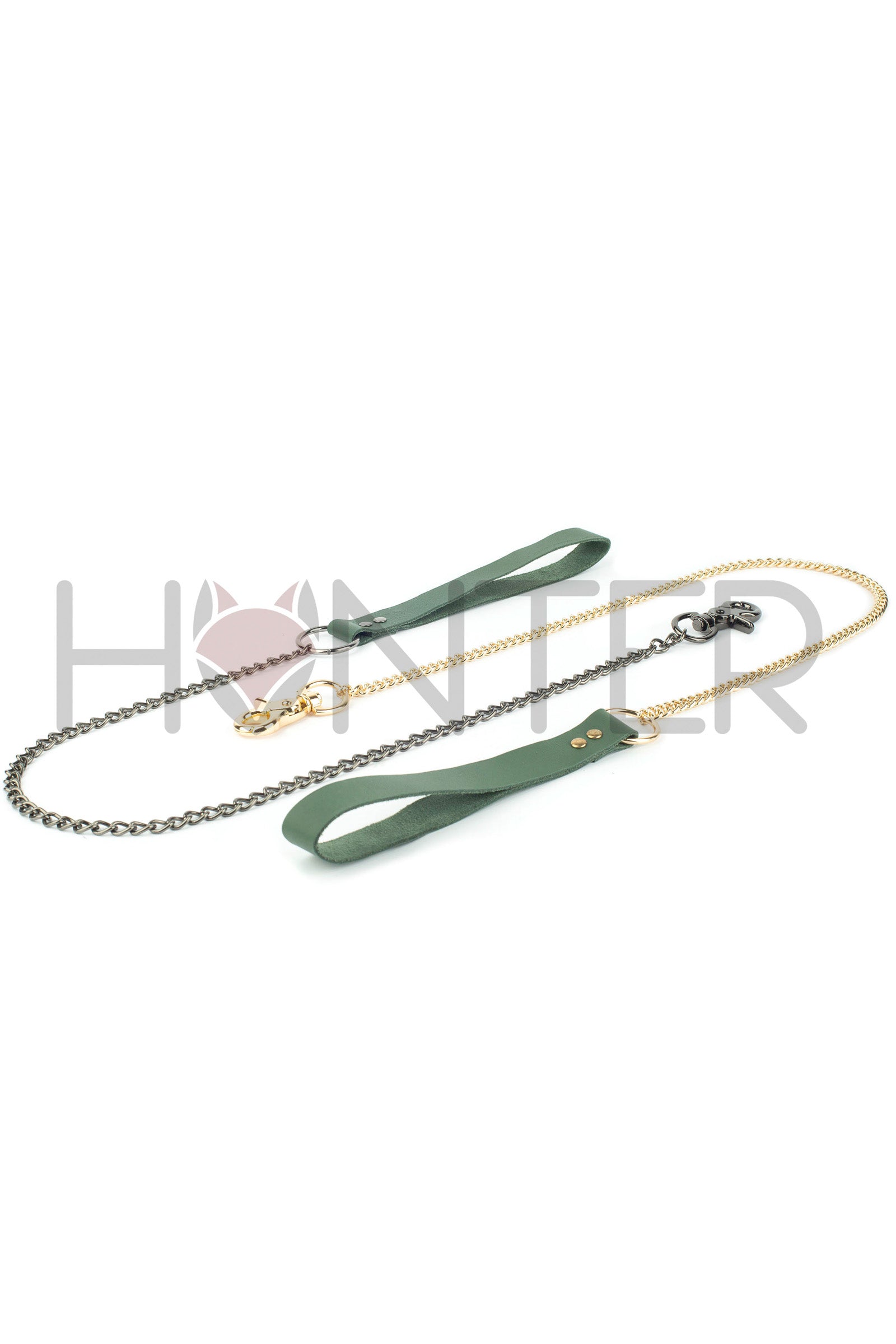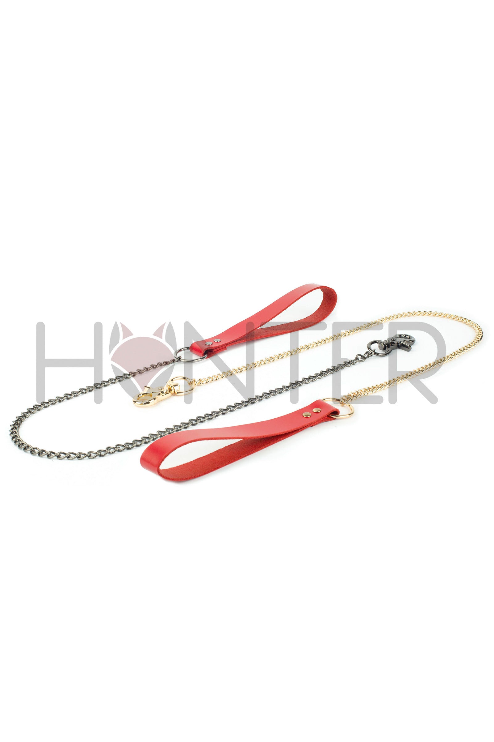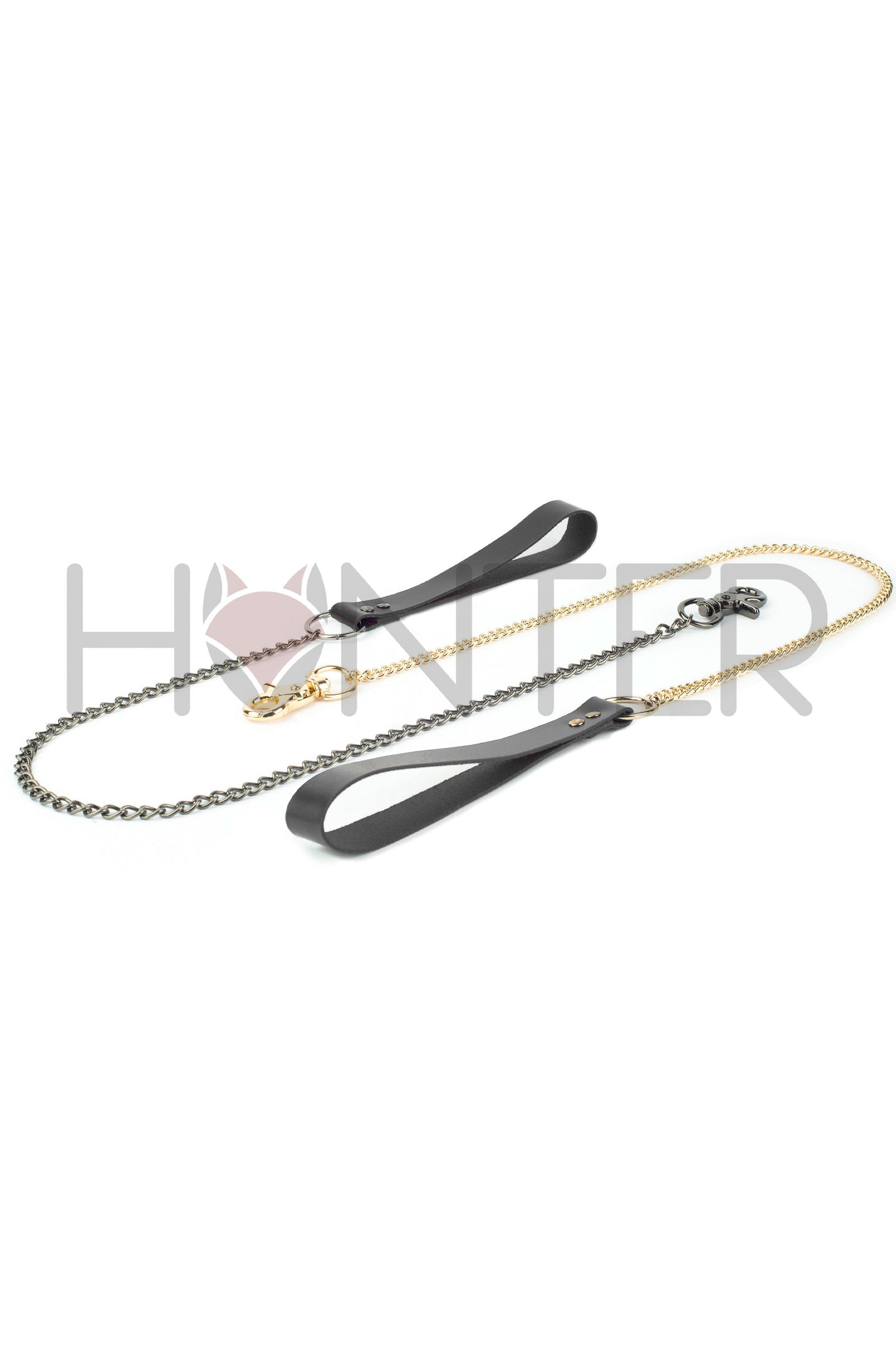Black handmade leather BDSM leash with gold or dark nickel chain and carabiner. Made of genuine leather 1.6-1.8 mm with metal hardware. The most popular accessory for erotic games. Well combined with chokers and neck bondage.