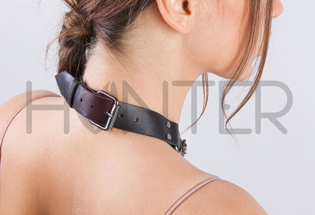 The product is made from premium-grade genuine leather, 1.6–1.8 mm thick, crafted using Italian tanning technology. This is combination-tanned leather — soft, flexible, and strong — specially developed for accessories like chokers and harnesses.