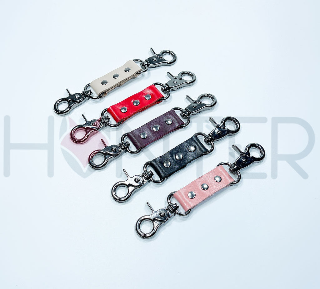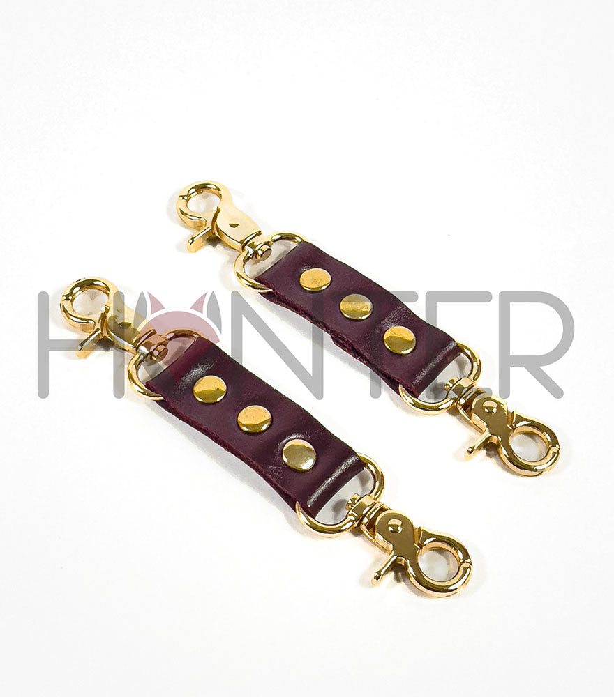 Our leather connectors are handmade with carabiners. Made from high quality 1.4-1.8mm thick leather, these connectors are perfect for securing arms and legs for maximum restraint and play. Choose from four colors of leather and two colors of hardware, all carefully crafted. Each connector is custom and handmade with attention to detail, ensuring that you get a product that is both unique and functional. Our leather connectors with carabiners will be a great addition to your collection. Order one today and take your style to the next level!