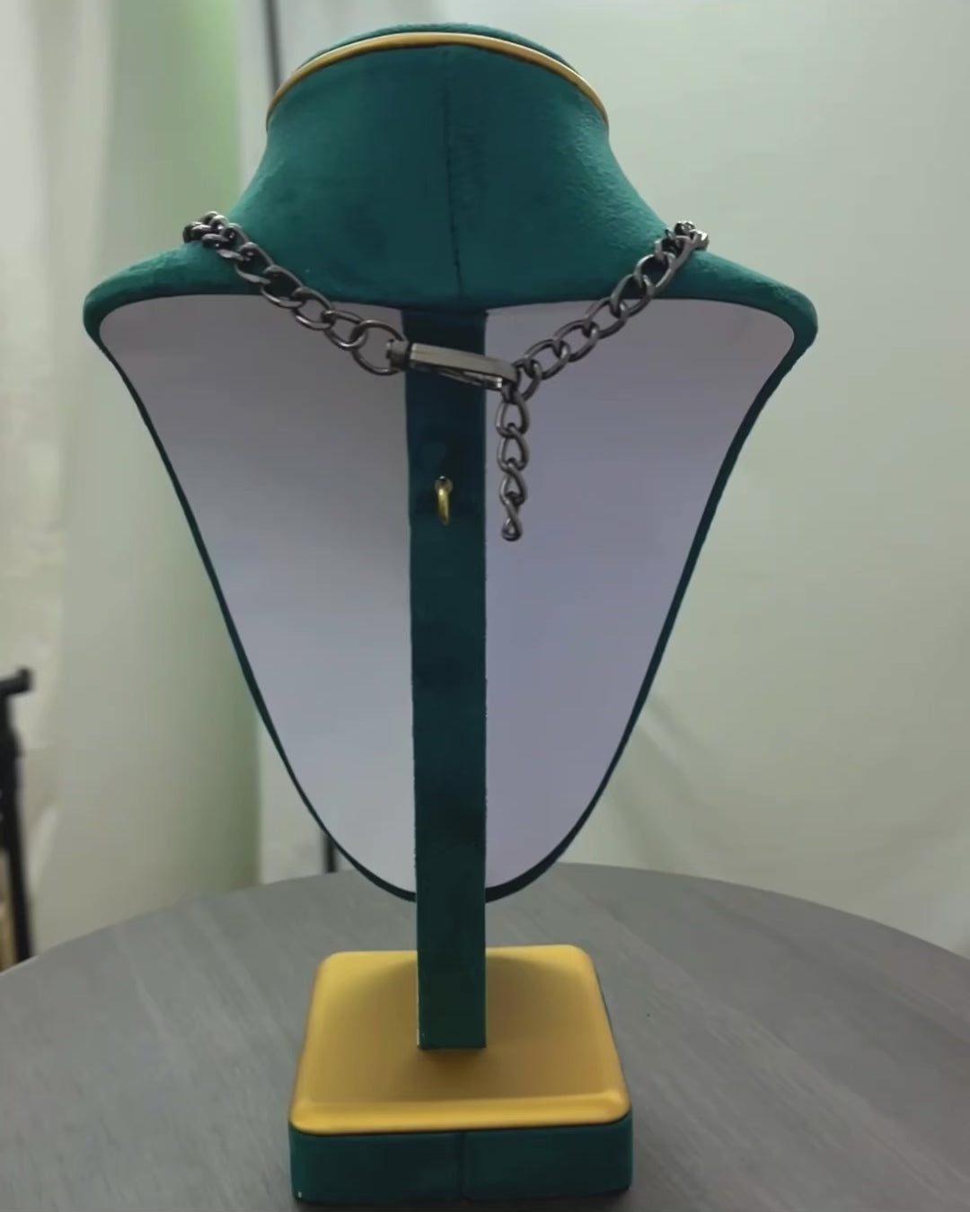 The metal chains feel cool and firm on the skin and keep their shape during wear.