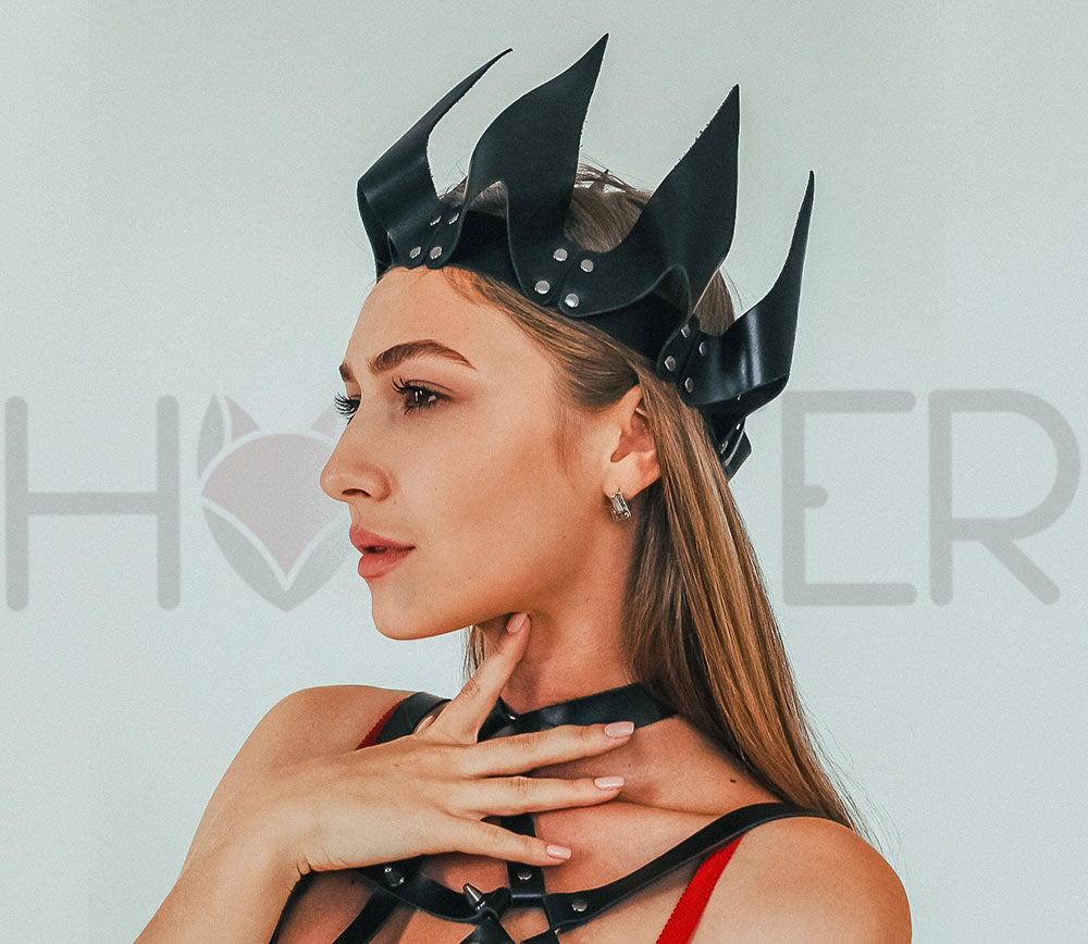 Make a statement with our handmade Leather Crown for Queens. Crafted with premium quality 1.4-1.8mm leather, this crown is perfect for BDSM games, festivals, or everyday accessorizing. Available in 4 leather colors and 2 hardware colors to choose from, this crown is made to order by our skilled craftsmen. With its regal design and comfortable fit, you'll feel like royalty whenever you wear it. Elevate your fashion game and indulge in the luxurious feel of our handmade Leather Crown for Queens. Order yours today and make heads turn at your next event