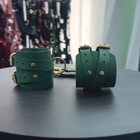 Cuffs, leg restraints, and other bondage accessories are elements of consensual play, physical closeness, and trust between adults. Their use requires care, attention, and clear communication.